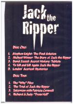 Two Compilation DVDS featuring 9 Jack the Ripper related TV programmes, broadcast during the period 1985 - 2003 and recorded by Paul Daniel, ex-editor of the 'Ripperologist' magazine (December 1996 No. 8 - February 2000 No. 27). Contents of Disc One : Stephen Knight, The Final Solution - recorded September 20, 1985, running time 50 minutes; Michael Winner, The Diary of Jack the Ripper - recorded February 20, 1996, running time 1hr 14 minutes; David Jessel, Secret History Francis Tumblety - recorded July 25, 1996, running time 59 minutes; To Kill and Kill Again: Jack the Ripper - recorded January 23, 2002, running time 49 minutes; London's Scariest Mysteries: The Real Jack the Ripper (featuring Paul Begg, Shirley Harrison, Melvyn Fairclough, Don Rumbelow) - recorded May 23, 2003, running time 23 minutes. Disc Two : The "Why" Files (featuring Paul Begg, Shirley Harrison, Andy & Sue Parlour, Don Rumbelow, Pam Ball) - recorded November, 1997, running time 1hour 7 minutes; The Trial of Jack the Ripper (featuring Michael Grade, James Morton, Angela Rippon, Paul Gainey, Nick Warren, Andy Parlour, Jeremy Beadle, Max Clifford, Anne Graham, Shirley Harrison, Paul Begg) - recorded February 20, 2002, running time 1hour 31 minutes; Omnibus: Patricia Cornwell - Stalking the Ripper - recorded October 30, 2002, running time 59 minutes; Richard and Judy: "From Hell" with Melvyn Fairclough & Stewart P Evans - recorded 2001, running time 5 minutes. Includes tipped-in newspaper cuttings relating to the featured programmes. Two DVDs in plastic cases.